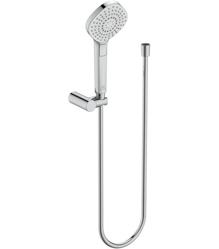 Ideal Standard Idealrain Evo set de douche B2405AA Numéro d'article : B2405AA Couleur: chrome Forme: diamant Diamètre: 115 mm 3 types de jets: pluie, massage, pluie douce (économie d'eau) Changement de faisceau sur simple pression d'un bouton avec support de douche pivotant avec flexible de douche Idealflex résistant aux plis, flexible et facile à nettoyer 1250 mm Tuyau de douche avec protection anti-torsion avec fonction anti-calcaire: élimination rapide du calcaire en essuyant simplement les buses en silicone à la main avec fonction Cool body: l'alimentation en eau interne séparée protège la surface chromée et contre les brûlures ...