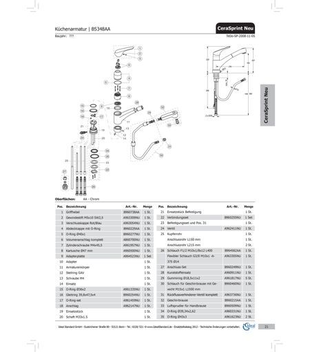 Ideal Standard leviers match0 CERASPRINT NEW, chromé B960738AA ...
