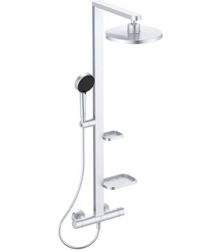 Description générale Set de douche Ceratherm ALU+ alliant fonctionnalité et design intemporel. Ce système de douche est composé d'un mitigeur thermostatique, d'une douche de tête ronde et d'une douchette à main, offrant une expérience de douche agréable et sécurisée. Spécifications techniques Mitigeur thermostatique avec cartouche Firmaflow® Therm XS Coloris : argenté brossé satiné Installation : murale Dimensions : Largeur 356 mm, Hauteur 1113 mm, Longueur 501 mm Douche de tête : diamètre 260 mm, débit 12 l/min Douchette à main : diamètre 100 mm, débit 8 l/min Flexible de douche : longueur 1750 mm Poids total : 6,92 kg Matériau : 84% aluminium recyclé et ABS Compatibilité et accessoires Raccords : G 1/2’’ Entraînement : entraxe 150 mm, raccords S Support de douchette coulissant inclus 2 tablettes réglables en hauteur (tablette et porte-savon) Installation Installation murale recommandée Entraînement de fixation minimal : 600 mm Instructions d'installation fournies Utilisation ...
