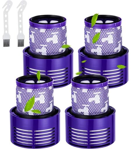 BLEOSAN 4 Filtres pour Dyson V10 Cyclone V10 SV12 Series avec 2 Brosses pour Aspirateur V10 Absolute V10 Animal V10 Total Clean Lavables