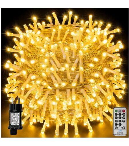 BLEOSAN Guirlande lumineuse led 100m 1000LED, guirlande lumineuse de Noël IP44 étanche avec télécommande et minuterie, 8 modes, décoration de fête pour Noël,