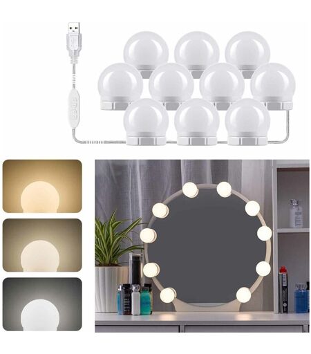 Bleosan - Lumière de Miroir 10 Ampoules Adhésif pour Coiffeuse Maquillage led Miroir Hollywood Dimmable Lampe Coiffeuse usb 3 Couleurs