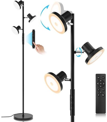 36W Lampadaire LED Dimmable 2500lm Avec Télécommande & Contrôle Tactile 4 Températures de Couleur LED pour Salon Chambre et bureau 36W Lampadaire LED Dimmable BLEOSAN Lampadaire sur Pied Salon à 3 Lumières LED 36W avec Télécommande, Contrôle de 3 lampes séparément individuellement Points forts: Lampe réglable:vous pouvez régler l’angle des 3 lampes. Chaque lampe a une rotation de 350° et un réglage vertical de 180°. Éclairage très Lumineux:216 LEDs haute luminosité intégrées, 72 LED par lampe, soit jusqu’à 2500 lumens, une luminosité suffisante pour éclairer toute la pièce. Plusieurs Fonctions et Configurations: 4 Températures de Couleur (2700 K – 6500 K), Gradation Réglable (10% – 100%), Fonction Mémoire, Fonction Minuterie, Protection des Yeux. Type de Source Lumineuse: LED à économie d’énergie. Durée de vie de plus de 50 000 heures, suffisante pour plus de 20 ans. L’utilisation à long terme ne fera pas chauffer les lampes, car elles sont fabriquées à partir de matériaux acryliques. ...