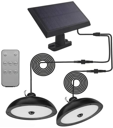 Lampe Solaire Extérieur Suspendue 78LED 3 Modes avec Capteur de Mouvement Câble de 3M pour Jardin Garage Lustre Solaire IP65 étanche Lustre Solaire Extérieur Suspendue 78LED Remarques: 1. Pour la première utilisation, vous devez allumer le bouton derrière le panneau, puis utiliser la télécommande pour travailler. 2. Veuillez le laisser sous la lumière directe du soleil pour le charger pendant 1 à 2 jours lorsque vous l’utilisez pour la première fois. 3. L’efficacité du panneau solaire dépend de la météo. + produit Spécifications: Panneau solaire:5.5V Temps de charge:4-5h Batterie:3.7v 4800mAh Durée de travail après charge:18h Matériel:ABS + PC Longueur du fil:3mètres Caractéristiques: Alimentation par énergie solaire Allumage automatique après la couchée du soleil Etanche IP65 Contrôlé par télécommande Caractéristiques Lampes Suspendues à énergie Solaire: Panneaux solaires en silicium polycristallin avec un taux de conversion de la lumière élevé, une fois que la suspension solaire est ...