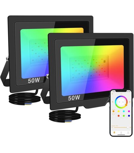 BLEOSAN 2PCS 50W rgbcw Projecteur led Extérieurs Avec Application Exterieur & Interieur MultiCouleurs 4 Modes Lumière de Projecteur, Neon Spot Led Pour
