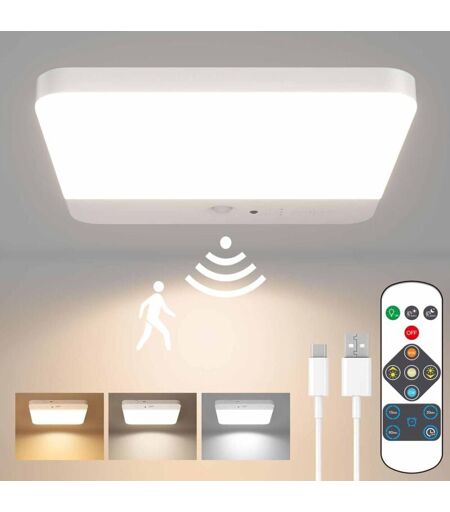Bleosan - Lampe de Plafonnier avec Détecteur de Mouvement sans Fil, Rechargeable Plafonnier pour Salle de Bain, Garage, Escalier Télécommande