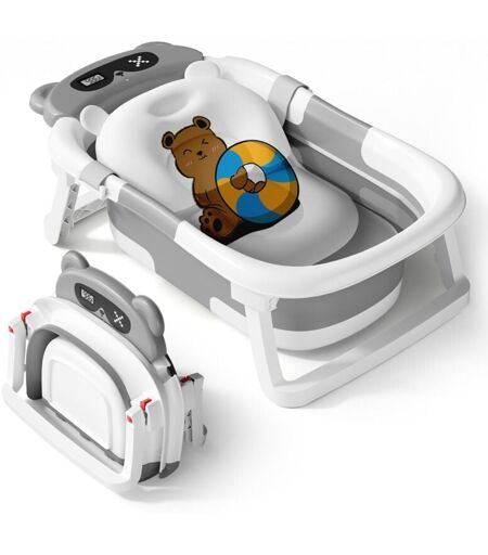 Bleosan - Baignoire Pliable BéBé Pour Nouveau-Né Avec Coussin Doux Thermomètre Cadeau de naissance Voyage Portable, Peu Encombrant, Gris
