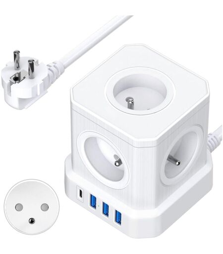 BLEOSAN Multiprise Cube 9-en-1 avec usb 5 Prises eu avec 3 Ports usb-a et 1 Port usb-c 4000W Prise avec Interrupteur et Cable 2M Rallonge