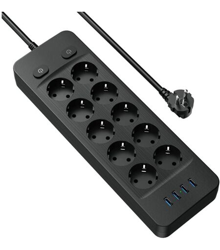 Bleosan - Multiprise Electrique 4000W Multiprise 10 Prises avec 4 Ports usb Bloc Multiprise Parafoudre Surtension avec Interrupteur Câble 2M
