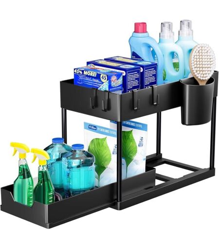 BLEOSAN Etagère Rangement Sous Évier à 2 Étages avec Tiroir Coulissant Organisateur Sous Évier Multifonctionnelle pour Cuisine Salle de Bain