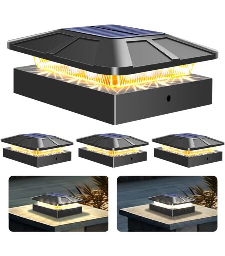 BLEOSAN 4PCS Lampe Solaire Extérieure pour Poteau Jardin IP65 Étanche Solaires 3 Couleurs Lumières 120x120x50mm
