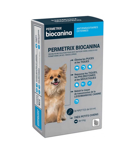 Parapharmacie > Vétérinaire > Anti-parasites > Anti-puces et anti-tiques Biocanina Permetrix 200mg/40mg Très Petit Chien x 3 - Anti-puces et anti-tiques - Pharmacie en ligne LaSante.net