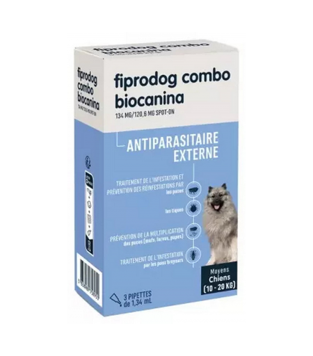 Parapharmacie > Vétérinaire > Anti-parasites > Anti-parasites chien Biocanina Fiprodog Combo Antiparasitaire Externe Moyens Chiens 10 - 20 kg Pipettes x 3 - Anti-parasites chien - Pharmacie en ligne LaSante.net