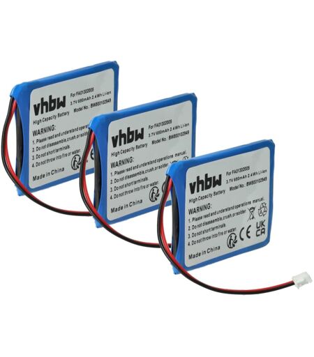 vhbw - the clever way - Batterie de rechange de haute qualité avec une grande autonomie et compatible avec votre téléphone (vous trouverez ci-dessous tous les modèles correspondants) - La batterie peut être chargée avec le chargeur standard ou un chargeur compatible - Nos batteries répondent à toutes les normes de sécurité actuelles CONTENU DE LIVRAISON : - 3x batterie DONNÉES TECHNIQUES : - Technologie : Li-ion - sans effet mémoire - Capacité : 650 mAh - Tension : 3,7 V - Énergie nominale : 2,4 Wh - Nombre de cellules : 1 - Poids : 16 g COMPATIBLE AVEC Avaya 3730, DECT 3720, DH6 Pour garantir la compatibilité, veuillez vérifier si votre batterie utilisée actuellement est répertoriée. REMPLACEMENT POUR : - BKB 201 010/1, FA01302005, FA83601195, BKB201010/1, FA01302005, FA83601195, 660177 1F, 660177 R1A, BKB201010/1, FA01302005, FA83601195, BKB201010/1, FA01302005, FA83601195 vhbw - Accessoires et pièces de rechange de haute qualité pour prolonger la durée de vie de vos appareils électriques. ...