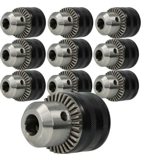 Mandrin de perçage robuste pour votre perceuse Le mandrin de perçage à engrenages est particulièrement stable et maintient le foret fermement, même lors de travaux de construction lourds. Grâce à la très forte adhérence, il est également possible d'utiliser des forets de plus grande taille. La grande portée vous offre une flexibilité maximale dans le choix des forets. Les matériaux sélectionnés garantissent une longévité particulièrement longue. CONTENU DE LIVRAISON : - 10x mandrin de perçage rapide DONNÉES TECHNIQUES : - Longueur : 6 cm - Envergure : 1,5 - 13 mm - Filetage intérieur : 13mm (1/2") x 20 - Pour rotation droite/gauche - Résistant au perçage à l'impact - Matériau : métal - Poids : 286 g COMPATIBLE AVEC Würth REMPLACEMENT POUR : - 30648 ...