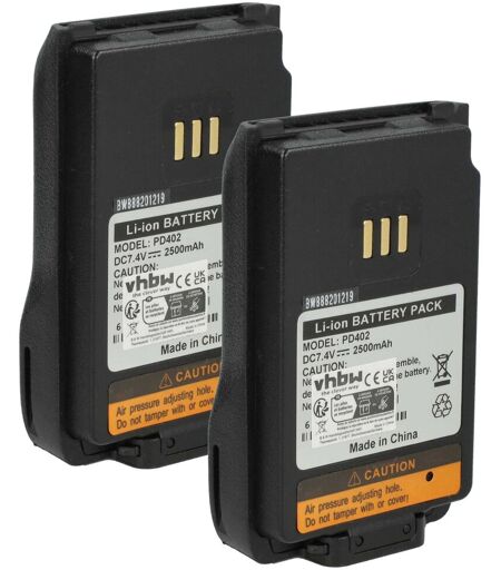 vhbw 2x Batterie compatible avec Hytera PD662, PD660 UL913, PD665, PD662G, PD666, PD680 CQST radio talkie-walkie (2500mAh, 7,2V, Li-ion)