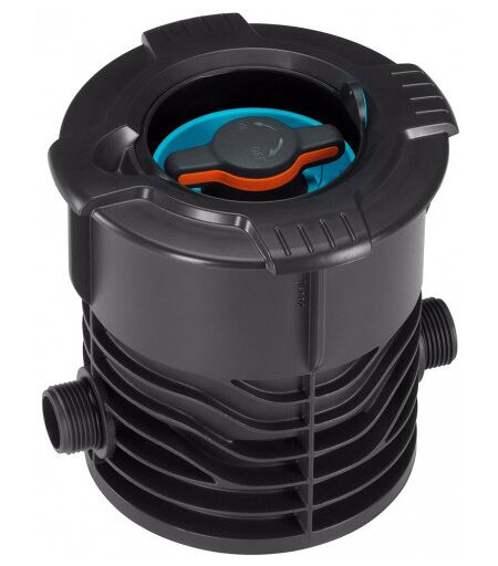 Vanne d'arrêt • Filetage 3/4" male thread • La vanne d'arrêt GARDENA, qui fait partie du système d'arrosage enterré Sprinkler System GARDENA, permet d'arrêter manuellement des arroseurs escamotables individuels ou des groupes entiers d'arroseurs • Il est possible de régler le débit d'eau en continu ou de l'arrêter complètement • Le couvercle supérieur disparaît à l'intérieur de l'arrosoir lorsqu'il est ouvert et ne constitue donc pas un obstacle lors de la tonte de la pelouse • Le large bord circonférentiel évite que l'herbe ne pousse dans le couvercle • Un tamis amovible empêche de salir le bidon lorsque le couvercle est ouvert • La vanne d'arrêt GARDENA a un filetage mâle de 3/4"> ...