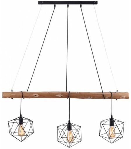 Description Adoptez le look vintage tendance dans vos quatre murs ! La suspension robuste se caractérise par son style vintage populaire. Sa combinaison d'une poutre en bois et de trois paniers en métal noir s'harmonise et crée un accroche-regard particulier au-dessus de votre table de salle à manger. La lampe suspendue moderne est livrée sans ampoule et peut être équipée de trois ampoules avec une douille E27. Les ampoules ne sont pas incluses ! Détails lampe • Type de lampe : suspension • Matériau : métal, bois • Couleur : noir, marron • Classe de protection : IP20 • 3 flammes • Tamis à mailles • Longueur x largeur x hauteur en cm : 100 x 20 x 120 • Douilles : 3x E27 • Ampoules incluses : Non • Puissance de la lampe : 3 x 60 watts maximum • Alimentation : 230 V, 50 Hz ...
