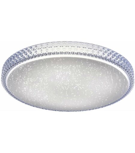 Description Plafonnier de haute qualité pour le salon. Ce plafonnier rond séduit par son aspect fascinant de ciel étoilé. Il est fabriqué à partir d'une combinaison d'acier et de plastique et les nombreux petits points translucides de l'abat-jour donnent l'impression que de petites étoiles scintillent. L'abat-jour de la lampe semble être encadré par le motif structurel transparent qui orne le bord extérieur. L'ampoule de 36 watts émet environ 3240 lumens et il est possible de régler la température de couleur de 3000 à 5000 kelvins en appuyant plusieurs fois sur l'interrupteur, car le luminaire est équipé d'une commande de gestion de la lumière CCT. Grâce à cette commande, ce plafonnier haut de gamme reflète toutes les couleurs de lumière d'une journée. D'un diamètre de 60 cm, ce luminaire est polyvalent et trouvera à coup sûr une place de choix dans l'une de vos pièces à vivre. Laissez-vous enchanter par le beau ciel étoilé. Une ampoule LED de haute qualité et à faible consommation ...