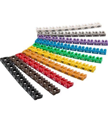 Goobay Clips d'Identification de Câbles « Chiffres 0-9 », pour un Diamètre de Câble de 3,8 - 5,9 mm, 10x 10 bagues de couleur pour l'identification des