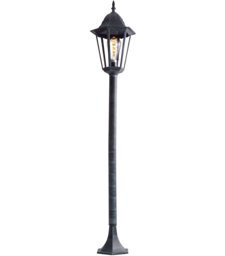 Description Lampadaire de haute qualité pour une utilisation en extérieur. Que ce soit sur la terrasse ou dans le jardin, cette lampe fait bonne figure partout et illumine de manière optimale votre zone sélectionnée. En raison de la classe de protection IP44 Cette lampe est protégée contre les projections d'eau et donc prédestinée à une utilisation en extérieur. La lampe n'est pas incluse dans la livraison. Détails luminaire • type de luminaire : Lampadaire • Matériau : ALU moulé sous pression • Couleur : Vert-Noir • Abat-jour : Verre, clair • Classe de protection : IP44 • Diamètre x hauteur en cm : 23,5 x 120 • Diamètre de la base en cm : 17,2 • Douille : 1x E27 • Ampoules incluses : Non • Ampoules de puissance : 1x 60 watts maximum • Alimentation : 220-240V, 50-60Hz ...