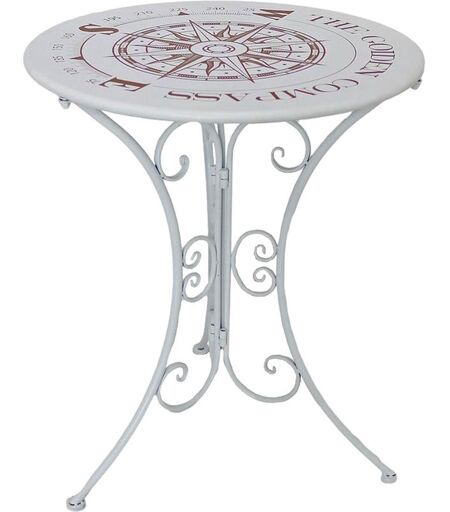 HARMS Petite table de jardin table d'appoint en fer table de balcon petite ronde, blanc, design boussole, DxH 60x70 cm