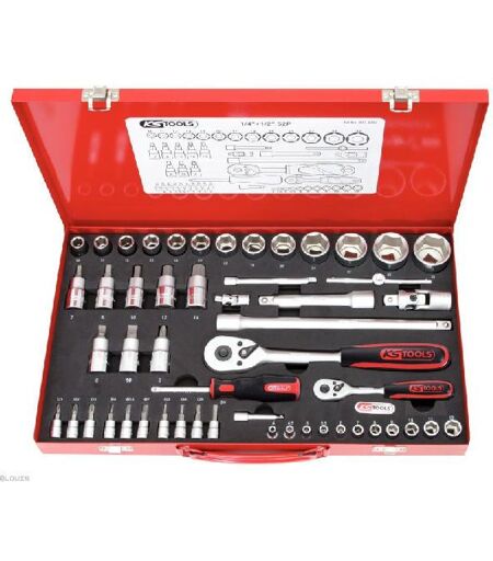 KS Tools Jeu de douilles 6 pans 1/4'' - 1/2'', finition chromé mat, 52 pcs