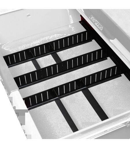 Pour tiroirs de dimensions intérieures 565 x 395 mm Jeu pour 1 tiroir de servante Compartimentation flexible Métal - Code EAN: 4042146401873 - Statut produit: Actif - Pièces dans le set: 23 pièces - Poids: 3,00 kg ...