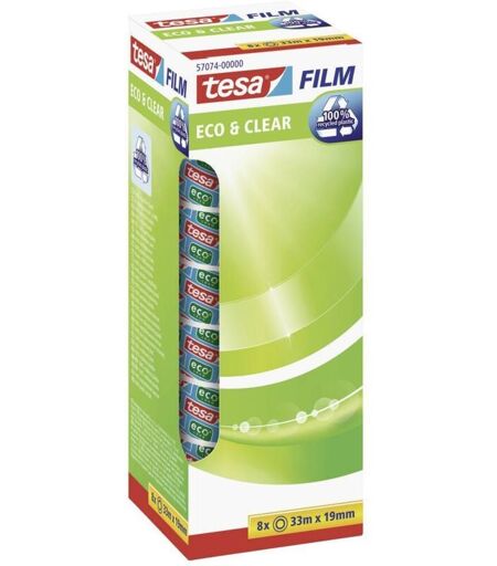57074-00000-01 film Eco & Clear transparent (l x l) 33 m x 19 mm 8 pc(s) - Tesa