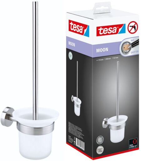 Tesa - Moon brosse wc, acier inoxydable, adhésif, 390mm x 115mm x 147mm