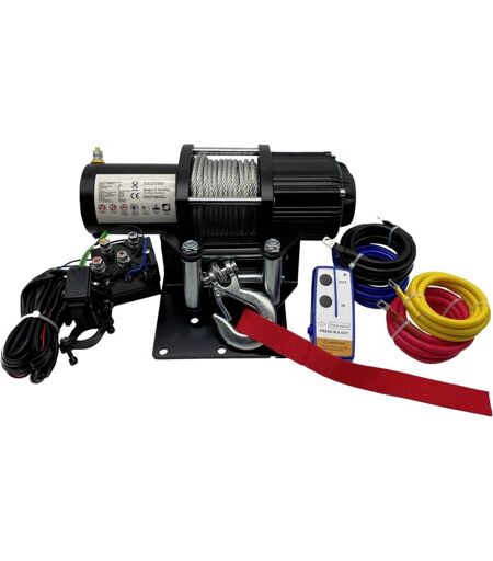Description générale Treuil moteur 12 V avec câble en acier, force de traction jusqu'à 3150 kg. Idéal pour voitures, quads, ATV (4x4) et véhicules utilitaires. Il est équipé d'une télécommande filaire et sans fil pour un contrôle facile. Le treuil dispose d'un système de roue libre manuelle et d'un frein automatique en cas de panne de courant. Important : ne jamais dérouler complètement la corde, seulement jusqu'au marquage rouge. Spécifications techniques Force de traction (en roulant) : 3150 kg Longueur de câble : 14 m Diamètre du câble : 5,5 mm Dimensions : 335 x 114 x 120 mm Dimensions du tambour : diamètre 38 mm - largeur 73 mm Poids : 13 kg Démultiplication : 153:1 Tension de fonctionnement : 12 V Vitesse du câble (avec charge) : 2,4 m/min Compatibilité et accessoires Compatible avec quads, ATV et véhicules utilitaires. Utilisation d'une poulie (non fournie) possible pour augmenter la force de traction. Installation Instructions de montage détaillées incluses dans l'emballage. ...