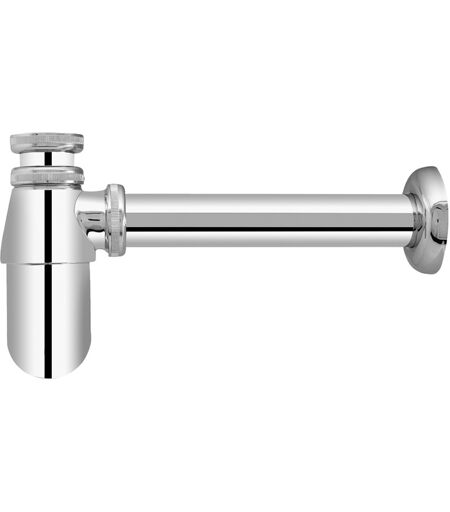 Siphon anti-odeur pour bouteille ASW 100184 1 1/4" x 32 mm, rosace Ø 65 mm, laiton chromé