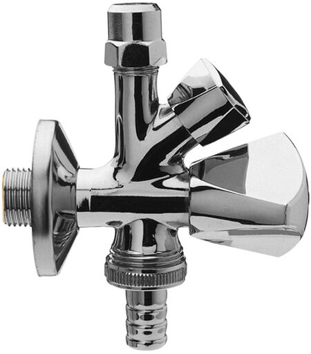 ASW Vanne d'équerre combinée universelle à double axe 421851 en laiton chromé, 1/2"x10mmx3/4", avec clapet anti-retour et rosace