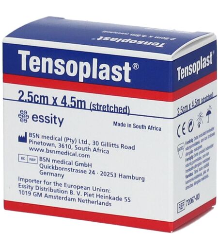 Taille du pansement:2,5 cm x 4,5 m Indication:Support ferme pour articulations et jointures blesséesContrôle des épanchements et de l’enflureMaintien en place de pansements sur des régionsDescription du produit:Ce bandage élastique, adhésif et poreux, est fait d’un tissu extensible de qualité supérieure et procure une compression contrôlée et un soutien ferme. Son adhésif fiable le maintient efficacement en place, même durant un traitement prolongé. Caractéristiques: Adhésif poreux qui permet à la peau de respirerAdhésion fermeRebords frangés pour un confort accruLigne jaune centrale pour faciliter l’applicationSans latex (Tensoplast® LF seulement)Conseils d'utilisation: Se conformer aux informations disponibles sur l'emballage.Appliquer sur peau propre et sèche. Conditionnement: Boîte de 1 pièce ...