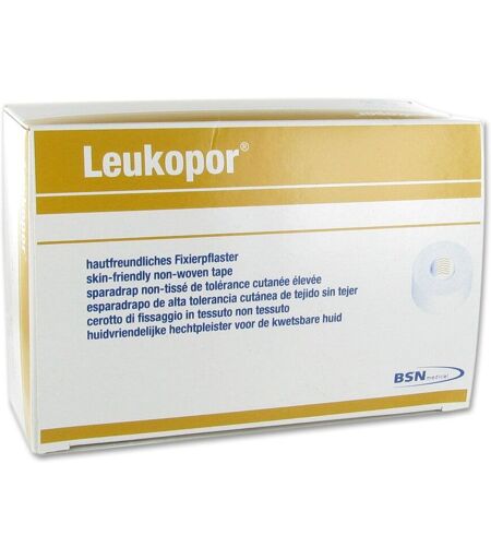 Leukopor est un sparadrap respirant pour les peaux sensibles. Il est flexible et idéal pour fixer de manière sûre les pansements, électrodes, sondes, tubes, cathéters et autres dispositifs. Flasque et fourreau antimicrobiens Respirant Doux pour les peaux sensibles Propriétés Flasque et fourreau antimicrobiens Les surfaces de la flasque et du fourreau présentent un matériau antimicrobien qui assure plus de 99,9 % de réduction de SDRM en six heures. (Seulement valide pour les produits avec flasque et/ou fourreau) Respirant Laisse la peau respirer, aidant à empêcher la macération. Doux pour les peaux sensibles Sparadrap médical bien toléré par les peaux sensibles et causant très peu ou pas de douleur au retrait. Déchirable à la main Pas de ciseaux ? Pas de problème. Ce sparadrap se déchire à la main, le rendant pratique pour une utilisation en déplacement. Flexible Flexible et suit les contours très marqués du corps humain. Retrait sans résidus Bonne adhérence sans résidus au retrait. Chimiquement inerte au caoutchouc et au plastique. Radio-transparent Adapté aux environnements médicaux, car nul besoin d’être retiré avant une radiographie. Conseil d'utilisation Veuillez toujours suivre les instructions du mode d'emploi, y inclus les informations de sécurité livrées avec le produit. ...