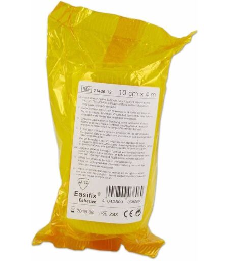 Taille du pansement:10 cm x 4 mIndication:Fixation de pansementsMaintien en place d’attellesMaintien en place de bandages de compressionDescription du produit:Easifix® Cohesive a de remarquables propriétés de moulage; flexible, il s’ajuste parfaitement aux parties difficiles du corps, sans restreindre les mouvements.Enduit d’une couche cohésive, ce bandage adhère à lui-même et non à la peau ou aux vêtements du patient. Il peut être réutilisé sur le même patient pour faciliter l’inspection régulière d’une plaie.CaractéristiquesLéger, doux, permet une bonne circulation d’airFormat économique (rouleau de 20 m)Matière légèreFixation qui ne glisse pasConseils d'utilisation:Se conformer aux informations disponibles sur l'emballage ...