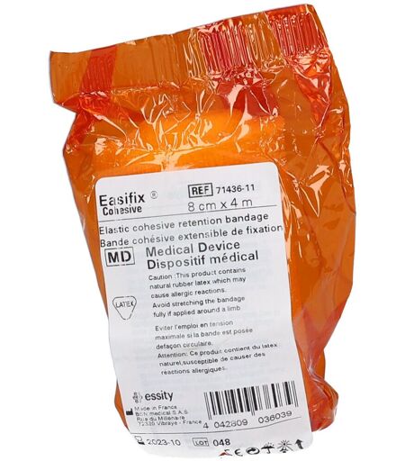 Taille du pansement:8 cm x 4 mIndication:Fixation de pansementsMaintien en place d’attellesMaintien en place de bandages de compressionDescription du produit:Easifix® Cohesive a de remarquables propriétés de moulage; flexible, il s’ajuste parfaitement aux parties difficiles du corps, sans restreindre les mouvements.Enduit d’une couche cohésive, ce bandage adhère à lui-même et non à la peau ou aux vêtements du patient. Il peut être réutilisé sur le même patient pour faciliter l’inspection régulière d’une plaie.CaractéristiquesLéger, doux, permet une bonne circulation d’airFormat économique (rouleau de 20 m)Matière légèreFixation qui ne glisse pasConseils d'utilisation:Se conformer aux informations disponibles sur l'emballage ...