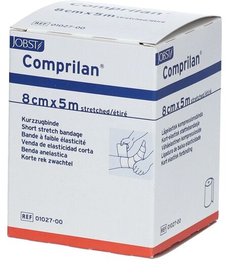 Taille du pansement:5 m x 8 cmIndication: Prévention et traitement des problèmes veineux et lymphatiques: varices, suites de chirurgie ou sclérothérapie, ulcères de jambe, œdèmes, prévention de thrombose veineuse profonde. Compression articulaire et musculaire Description du produit:Bande de compression à allongement court. thérapie de compression en présence d’insuffisance veineuse et d’indications lymphologiques immobilisation de membres et d’articulationsCaractéristiques: Support 100 % coton durable et réutilisable Extensible à 90% en un sens Perméable à l’air Résiste à la transpiration et aux crèmes Extrémités enduites d’un film protecteur destiné à prévenir l’effilochage (enduction polyuréthane) Lavable à 95°C et stérilisable à l’autoclave (sous réserve de validation du procédé) Peut être portée 24h/24h grâce à une pression de repos faible ...