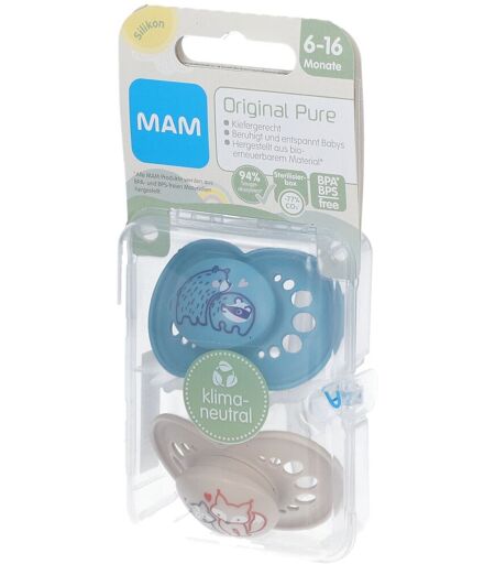 MAM Original Pure Tétines en silicone à motif Bleu-écru 6-16 mois Tétine(S) 2 pc(s)