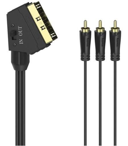 Câble de raccordement Hama Cinch-RCA / péritel av [3x Cinch-RCA mâle - 1x péritel mâle] 1.5 m noir