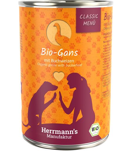 Herrmann's Menu Classic / Menu Bio 6 x 400 g pour chien - oie bio, sarrasin bio