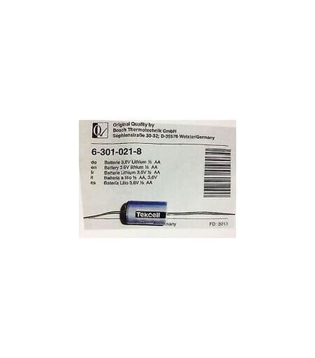 Fournisseur: BUDERUS - Reference: 63010218 - - Batterie Lithium Buderus - Batterie lithium non rechargeable compatible avec plusieurs modules de chaudière : Module de commande M400 S02 et Modèles HS 3204, 3208, HS 3220/3221, HS 3301/3303/3306, HW 3302 - Idéale comme batterie de remplacement - Forme: - Coloris: - Accessoire de remplacement de la pièce Buderus 63010218 - Pour modules de chaudières Dimensions et Poids: - Dimensions : 14.65x24.8 mm - Poids: 0.89 kg Autres données: - Capacité: 1200 mAh -Tension nominale: 3.6 V - Type de pile: Lithium (Li-SOCI2), non rechargeable - Connexion: Fil axial /fils à souder (pour montage sur carte) - Format: 1/2 AA équivalent au format 1/2 AA standard Garantie: 2 ans contre vices de fabrication, hors pièces d'usure. ...