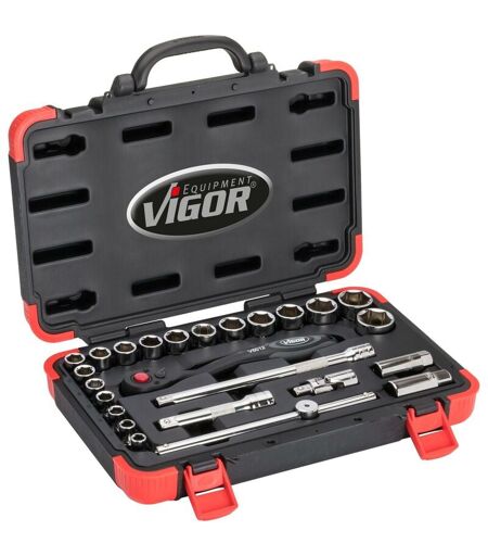 Vigor Jeu de clés à douilles ∙ V2460N ∙ Carré creux 1/2 pouce (12,5 mm) ∙ Profil à 6 pans extérieurs ∙ 25 pièces ∙ 10 – 32 ∙ Nombre d'outils : 25