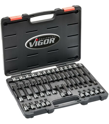 Vigor Jeu de douilles mâles ∙ V6017 ∙ Carré creux 3/8 pouce (10 mm) ∙ Profil TORX® intérieur ∙ 32 pièces ∙ T20 – T70 ∙ Nombre d'outils : 32
