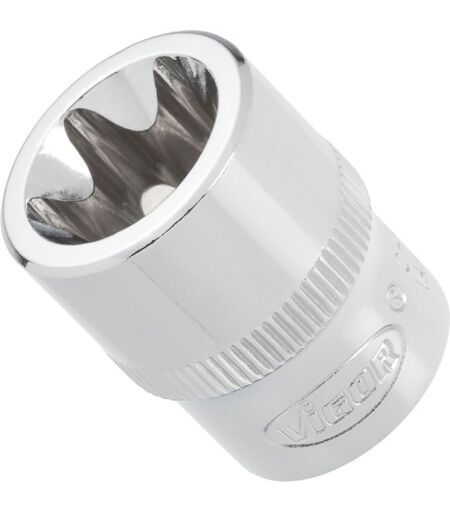 Vigor Carré femelle entraînement 10 = 3/8 pouce Douille TORX pour profil TORX extérieur - Carré creux 10 mm (3/8 pouce) - Profil TORX extérieur - Ouverture de clé: E 4 - Longueur totale: 28 mm - V2724