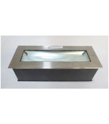 Encastré de sol fluo rectangle bord acier 180x460x120mm verre securit lampe 24W G23 1800lm asymétrique 230V 55° IP67 Bega 8833