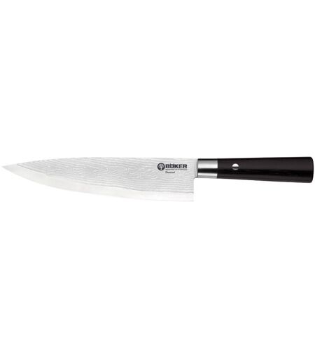 Longueur lame (mm) : 212 Acier : VG10 Damas Couleur lame : Damas Manche (Finition) : Bois Couleur manche : Noir Profil de lame : Chef Tranchant : Lisse Verrouillage : Fixe Longueur totale : 338mm. Damas 37 couches ...