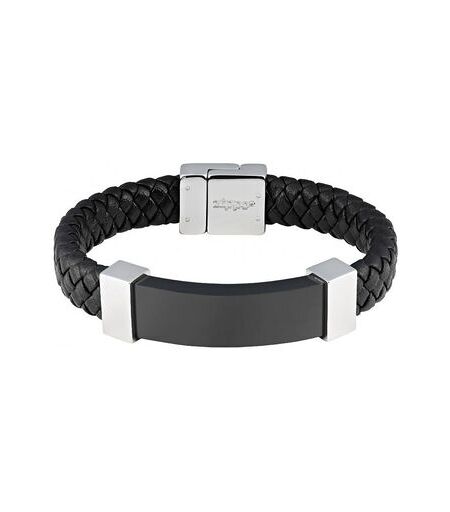 Bracelets Zippo Bracelet plat de cuir tressé et inox noir et argent Noir