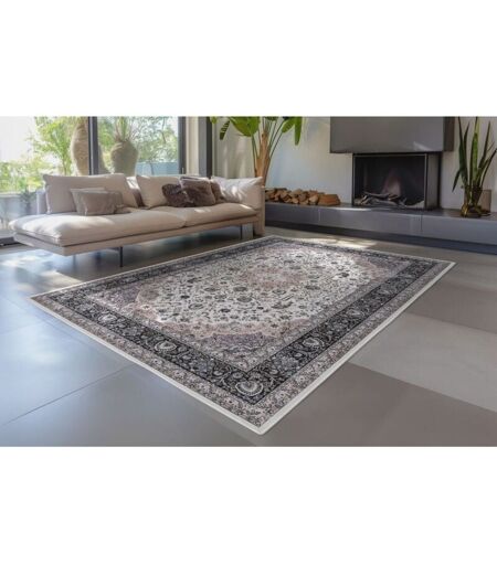 Allotapis - Tapis rouge oriental lavable en machine ethnique Benisse Ivoire 80x150