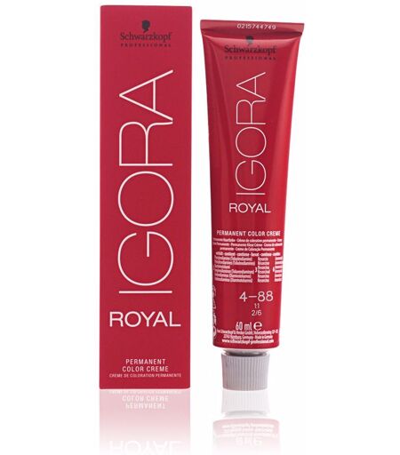 IGORA ROYAL permanent color creme. Teintures pour cheveux. Type de cheveux: Tous types de cheveux. Les tendances: Ácido cítrico. Tonalités: 1 noir, 3 marron foncé, 4 châtaigne, 5 marron clair, 6 blond foncé, 7 blonde, 8 blond clair, 9 blond très clair, 10 Blond ultra clair, Blanc, Acajou, 6.3 Caramels, Gris, Bleus Noirs, Les Rousses, Violon ...